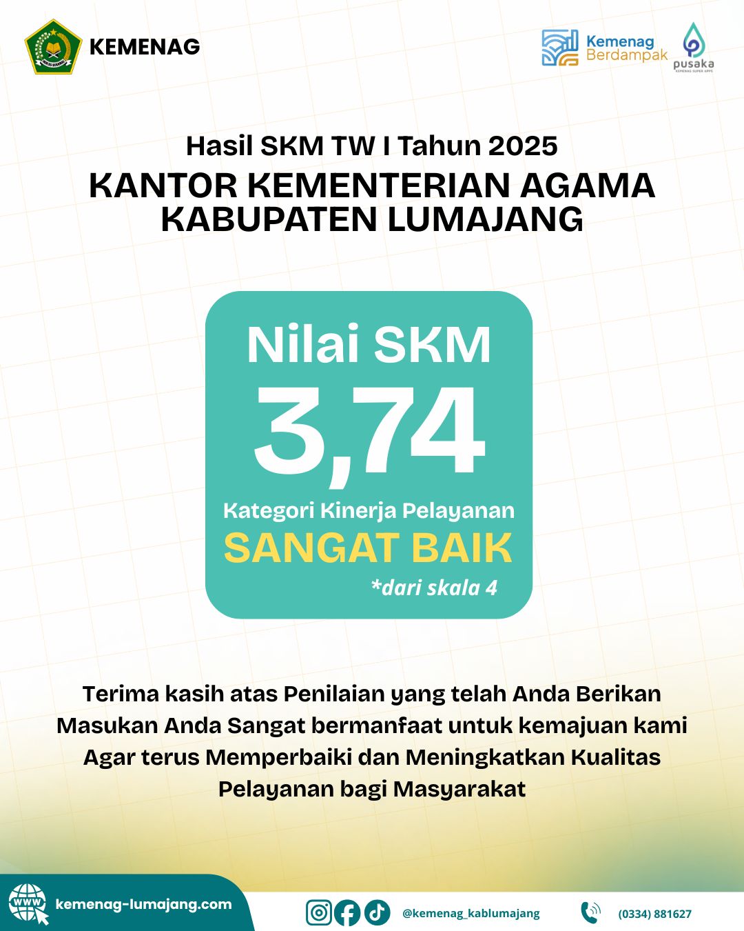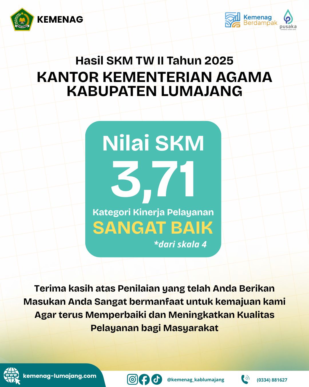 Hidup bersahaja dan selalu semangat meraih sukses dalam linkungan kerja yang bersih dan berwibawa